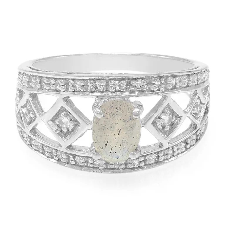 Madagaskar Labradorit & Weißer Topas Sterling Ring
