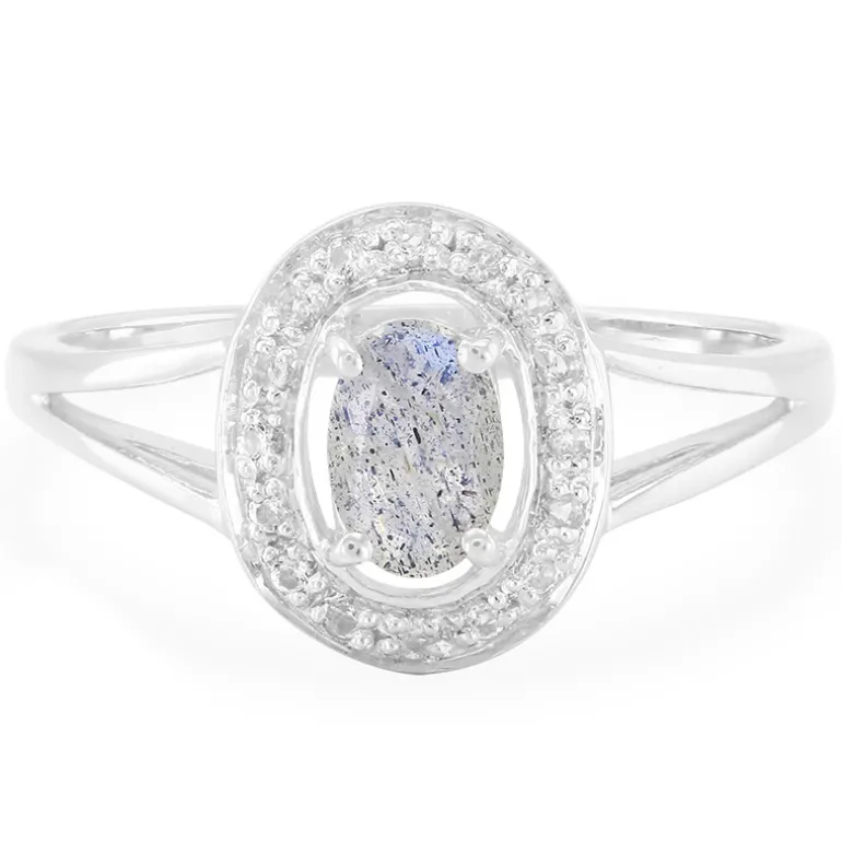 Entdecken Sie die mystische Anziehungskraft dieses Labradorit-Rings, der elegant aus 925er Sterling Silber gefertigt ist. Er ist mit einem ovalen Labradorit von 0,37 Karat aus Madagaskar besetzt, der von 16 Topasen im Brillantschliff umgeben ist. Dieser Ring eignet sich perfekt, um Alltagsoutfits aufzuwerten oder der Abendgarderobe einen Hauch von Eleganz zu verleihen. Er verkörpert sowohl Raffinesse als auch Stil. Eine fesselnde Wahl für jeden Anlass.