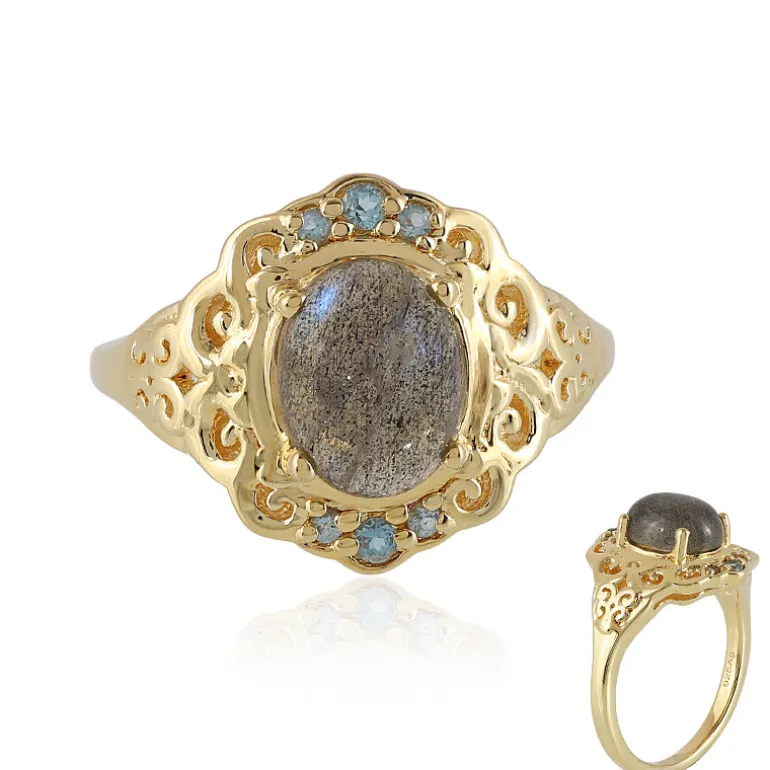 Madagaskar Labradorit & Blauer Topas Vergoldeter Ring