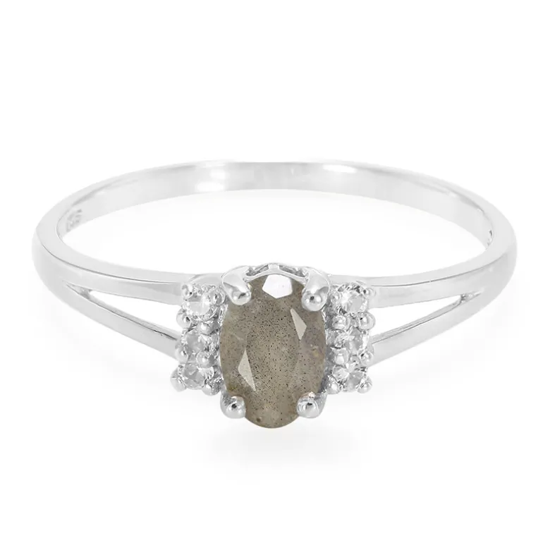 Madagaskar Labradorit & Weißer Topas Silber Ring