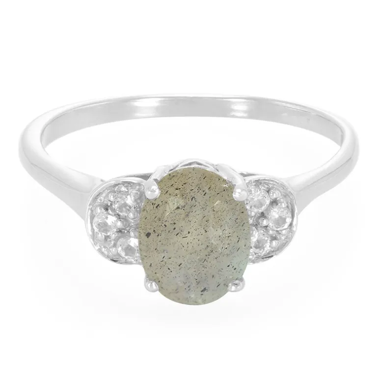 Madagaskar Labradorit & Weißer Topas Silber Ring, 1,05ct