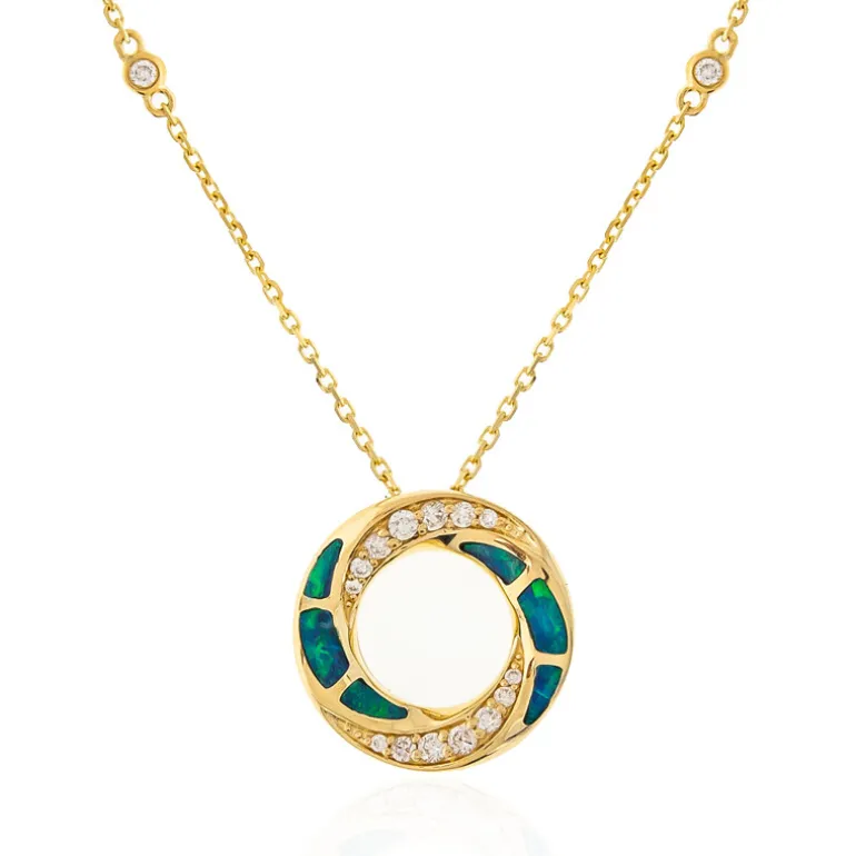 Lightning Ridge Opal Diamant Gold Halskette