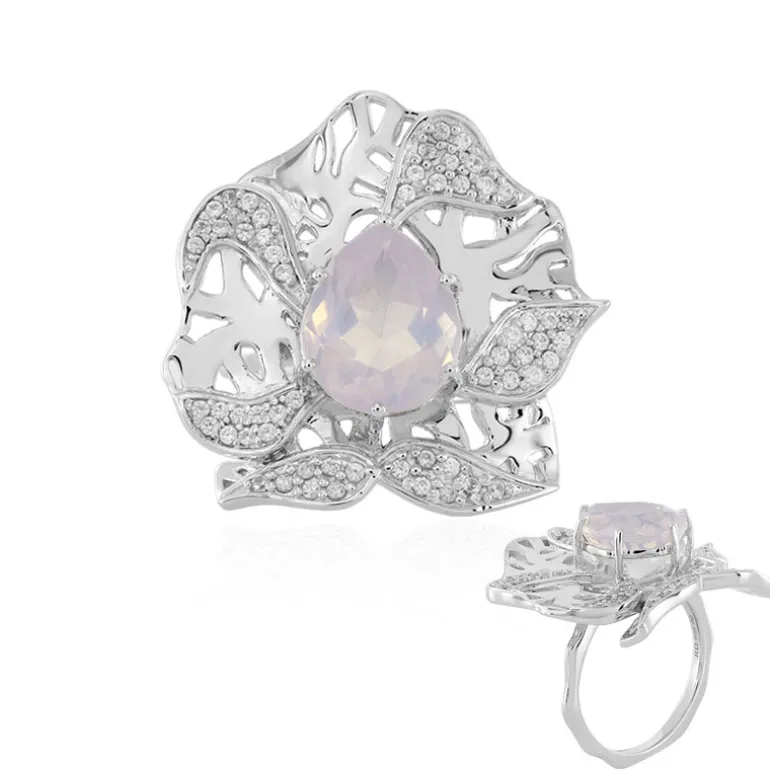 Entdecken Sie die Faszination dieses exquisiten Schmuckstücks mit einem 4,283 Karat schweren, tropfenförmigen brasilianischen Fliederquarz, der sich elegant in eine Fassung aus 925er Sterlingsilber schmiegt, die an eine Lilie erinnert. Das botanische Design ist mit 59 funkelnden kambodschanischen Zirkonen im Rundschliff von insgesamt 0,693 Karat verziert, die seinen Charme noch verstärken. Das Gesamtgewicht des Rings von 4,976 Karat macht ihn zu einer bedeutenden Ergänzung Ihrer Schmucksammlung und sorgt für Langlebigkeit. Er eignet sich sowohl für besondere Anlässe als auch für den eleganten Alltag. Kombinieren Sie dieses florale Wunderwerk mit Ihrem Lieblingskleid für einen mühelos schicken Look.