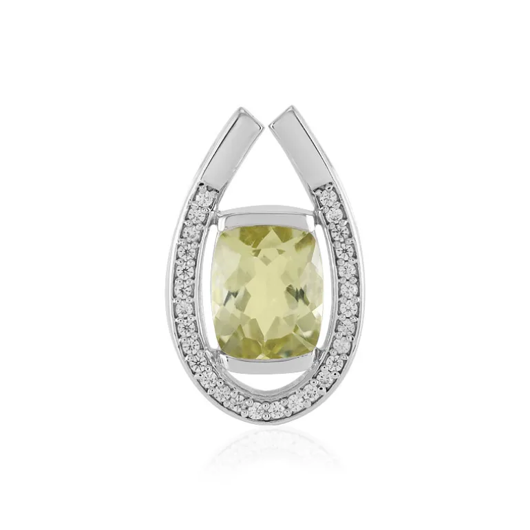 Wir präsentieren unseren schillernden Anhänger mit einem brasilianischen Limettenquarz von 2,89 Karat im Vintage-Schliff, eingefasst in einen funkelnden Heiligenschein aus 0,33 Karat kambodschanischen Zirkonen. Dieses Schmuckstück aus platiniertem 925er Sterlingsilber verbindet die Frische der Limette mit dem Glanz der Sterne. Sein Gesamtgewicht von 3,22 Karat sorgt für ein luxuriöses Gefühl, ohne zu erdrücken, und macht es für verschiedene Anlässe geeignet, von einem legeren Brunch bis zu einem eleganten Abend. Bringen Sie mit diesem auffälligen Accessoire einen Hauch von Zitrusfrüchten in Ihre Garderobe.