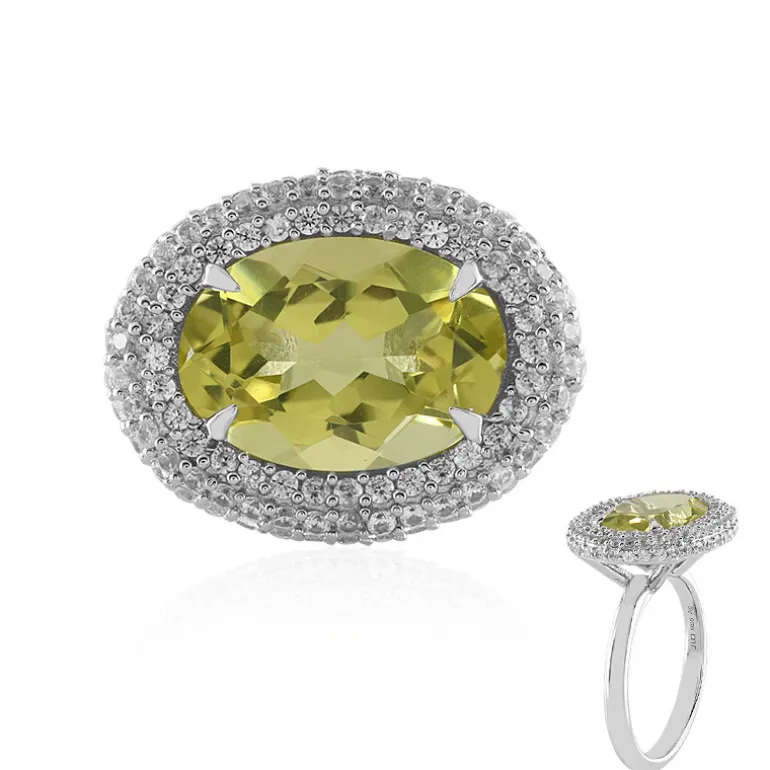 Schmücken Sie Ihre Hand mit dem strahlenden Glanz unseres brasilianischen Kalkquarz- und Zirkon-Sterlingsilberrings. Dieses prächtige Stück präsentiert einen atemberaubenden 4,395 Karat Limettenquarz im Ovalschliff, der von 108 funkelnden kambodschanischen Zirkonen von insgesamt 1,436 Karat exquisit ergänzt wird, die alle in einer hochwertigen platinierten 925er Sterlingsilberfassung eingefasst sind. Dieser Ring ist ideal für elegante Abende oder für einen Hauch von Glamour im Alltag. Mit seinem leuchtenden Farbton und den funkelnden Zirkonen zieht er garantiert alle Blicke auf sich und sorgt für Gesprächsstoff.
