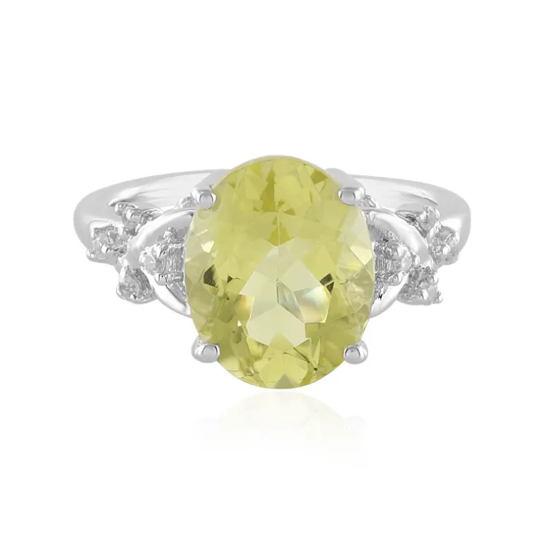 Dieser bezaubernde Ring aus 925er Sterlingsilber mit einem strahlenden brasilianischen Kalkquarz im Ovalschliff von 3,35 Karat zieht alle Blicke auf sich. Der schimmernde Stein wird durch acht zierliche Zirkone im Rundschliff aus Kambodscha ergänzt, die einen funkelnden Kontrast bilden. Dieser Ring eignet sich perfekt, um Ihrer Garderobe einen kräftigen Farbtupfer zu verleihen. Er ist ideal für den eleganten Alltag oder als fröhlicher Akzent für besondere Anlässe. Kombinieren Sie ihn mit Pastellfarben oder neutralen Tönen für einen schicken Look.