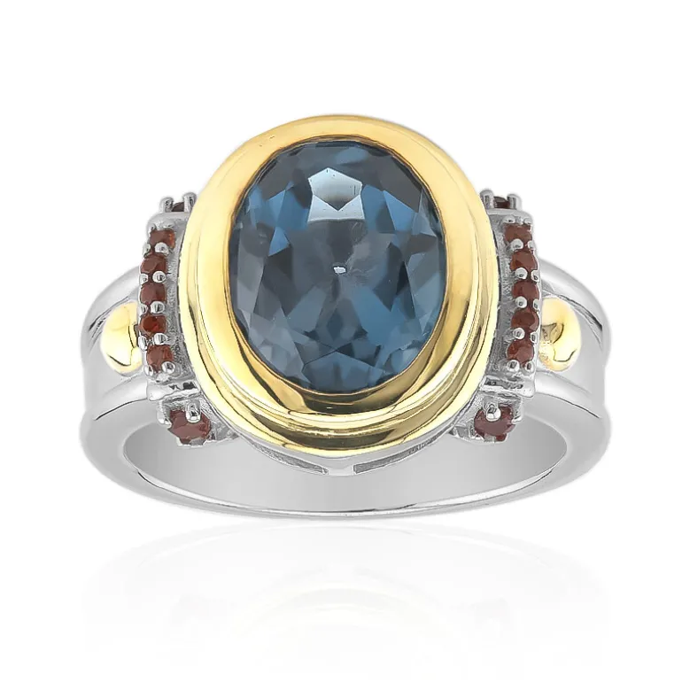 Brasilianischer Londoner Blautopas & Granat Silberring, 2,933ct
