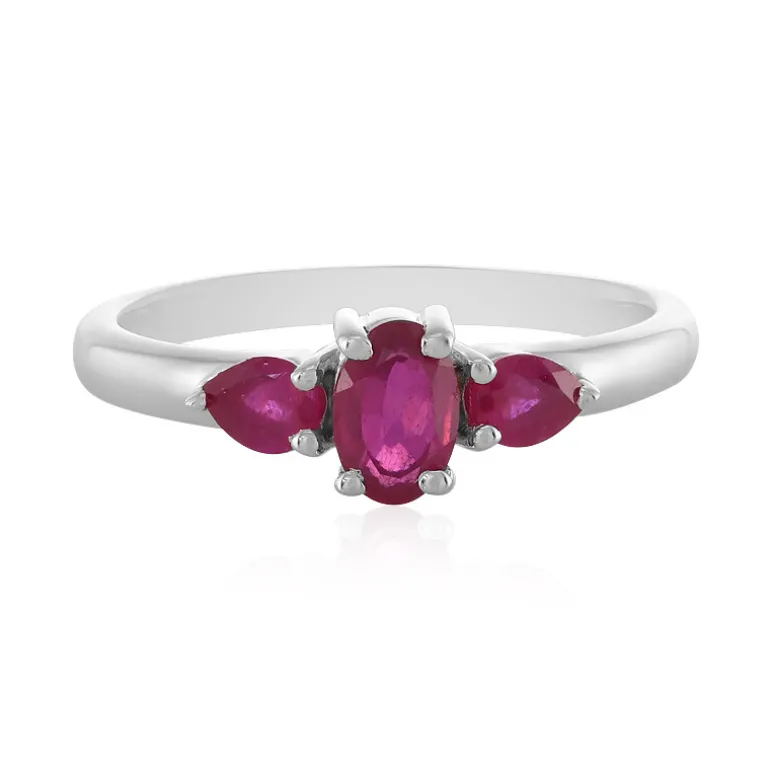 Entdecken Sie die Faszination des Madagaskar-Rubins mit diesem exquisiten Silberring, der einen Hauch von Raffinesse verkörpert. Der zentrale Rubin im Ovalschliff (0,696 ct) wird von zwei tropfenförmigen Rubinen (0,399 ct) umrahmt, von denen jeder ein lebhaftes Symbol der Leidenschaft ist, und ist eingebettet in platiniertes Sterlingsilber. Mit einem Edelsteingewicht von insgesamt 1,095 ct bietet dieser Ring eine atemberaubende Präsenz am Finger. Er eignet sich perfekt für Abendveranstaltungen oder als Farbtupfer für den Alltag und verbindet zeitlose Eleganz mit modernem Charme.