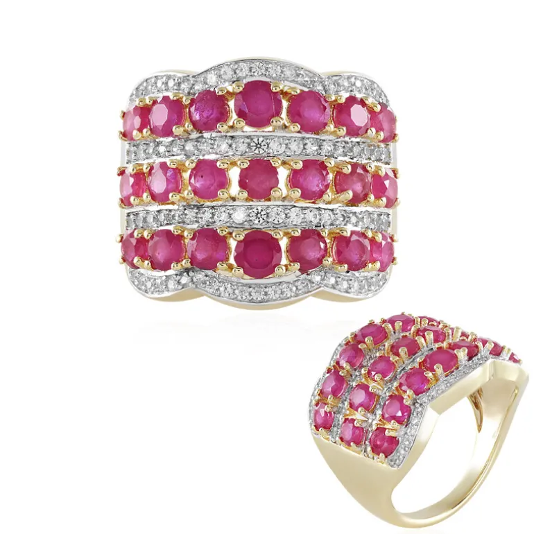 Entdecken Sie die lebendige Anziehungskraft unseres Madagaskar-Rubinrings, der in glänzendes, vergoldetes Sterlingsilber gefasst ist. Dieses auffällige Schmuckstück ist mit 2,565 ct tiefroten Rubinen besetzt, die durch das Funkeln kambodschanischer Zirkone von insgesamt 0,83 ct ergänzt werden und einen opulenten und auffälligen Kontrast bilden. Dieser Ring eignet sich perfekt, um Ihrer Abendgarderobe einen Hauch von Raffinesse zu verleihen. Die reiche Farbpalette und das komplizierte Design machen ihn zu einem Gesprächsanlass bei jeder gesellschaftlichen Veranstaltung.