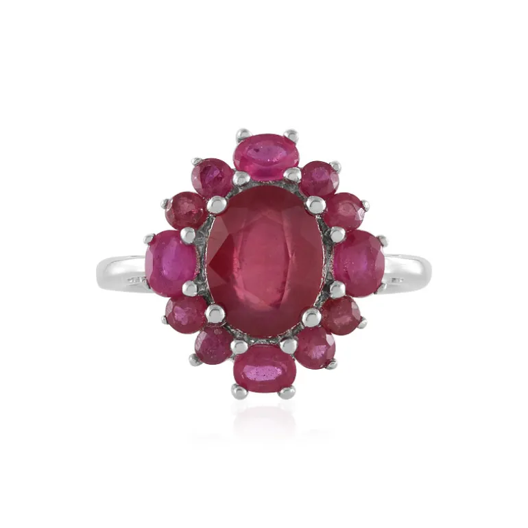 Entdecken Sie die Eleganz dieses atemberaubenden Rings aus Sterlingsilber mit einem ovalen Madagaskar-Rubin von 2,241 Karat, umgeben von weiteren ovalen und runden Rubinen von insgesamt 3,771 Karat. Der satte, tiefrote Farbton macht den Ring zu einem luxuriösen Schmuckstück, das sich perfekt für den Abend eignet oder einen Hauch von Glamour in Ihr Alltagsoutfit bringt. Erweitern Sie Ihre Schmucksammlung mit diesem faszinierenden Meisterwerk.