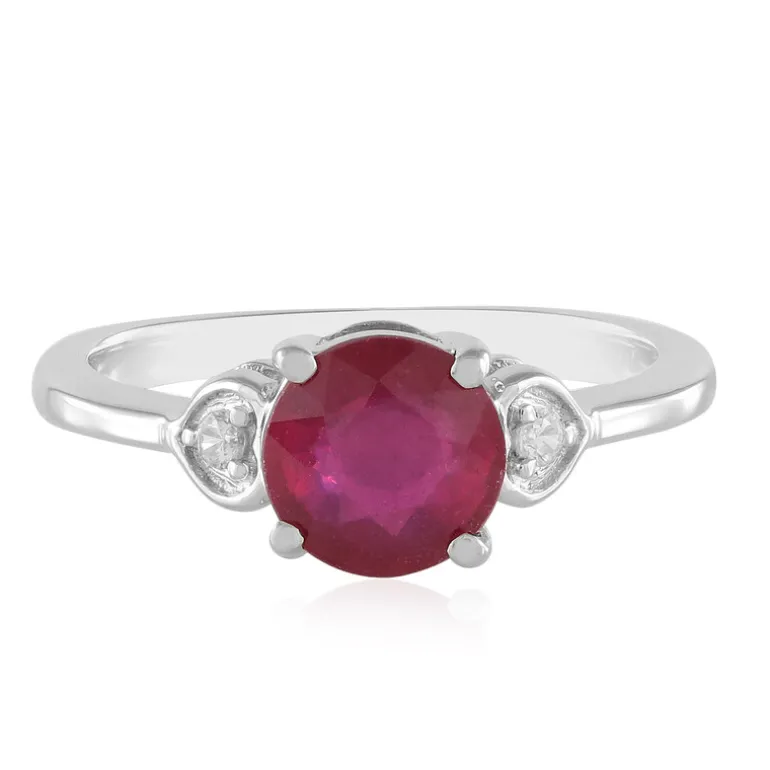 Entdecken Sie die Eleganz dieses Rings mit einem Rubin aus Madagaskar im Rundschliff von 1,612 Karat, der von einem kambodschanischen Zirkon flankiert wird. Der Ring ist aus 925er Sterlingsilber mit poliertem Platin-Finish gefertigt und bietet einen raffinierten Touch. Dieser zeitlose Ring ist ideal für den Abend oder besondere Anlässe und passt sowohl zu formellen als auch zu legeren Outfits.