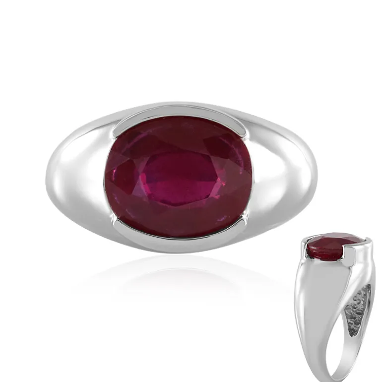 Ovaler Madagaskar Rubin Platinbeschichteter Silberring, 5,52ct