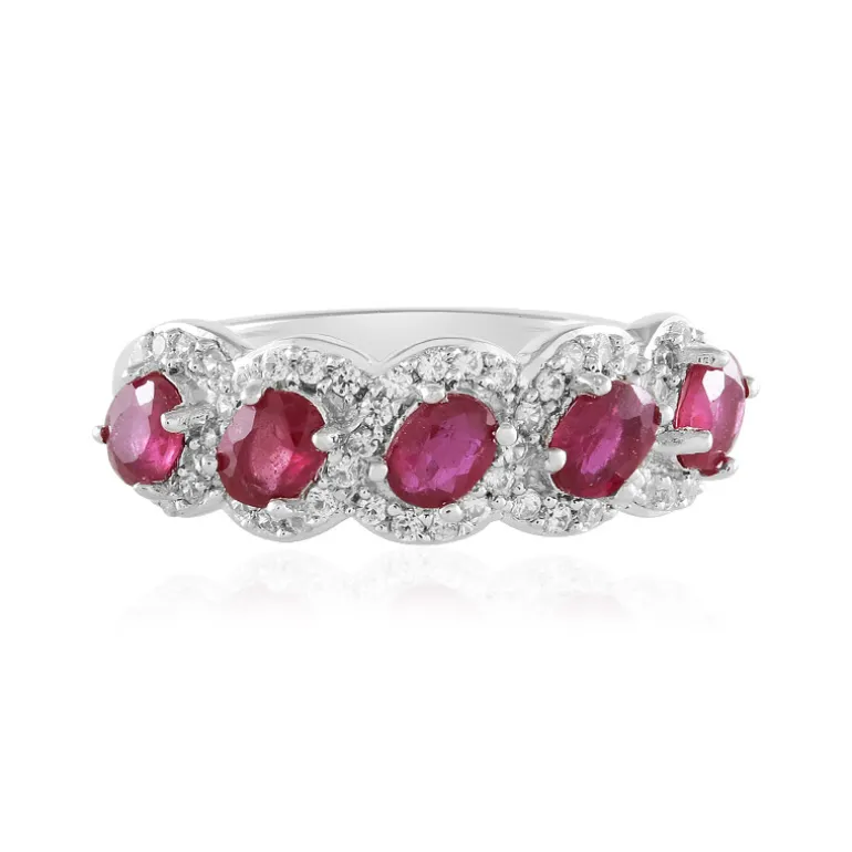 Entdecken Sie Eleganz mit diesem atemberaubenden Madagaskar-Rubinring aus Sterlingsilber. Mit fünf lebhaften Rubinen im Ovalschliff und funkelnden Zirkonen aus Kambodscha strahlt dieses Schmuckstück Raffinesse aus. Er eignet sich sowohl für besondere Anlässe als auch für den glamourösen Alltag und passt sowohl zu Cocktailkleidern als auch zur Abendgarderobe. Gefertigt aus 925er Sterlingsilber, verspricht es zeitlose Schönheit und Haltbarkeit.
