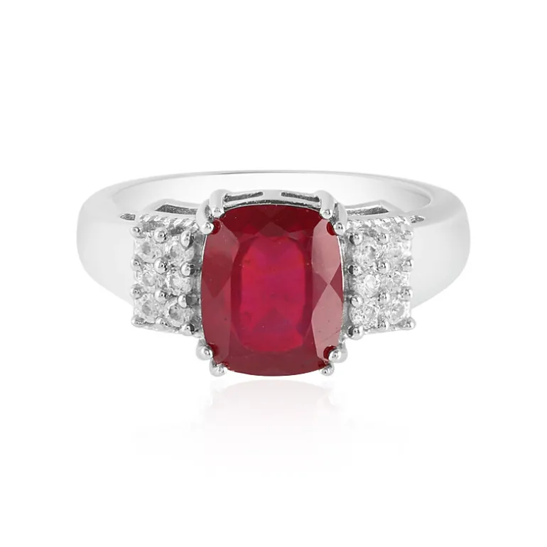 Madagaskar Rubin 3,74ct Plated Silber Ring, Kambodschanischer Zirkon