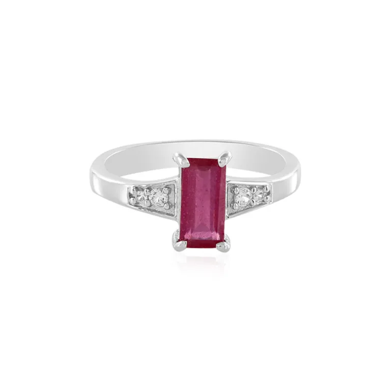 Genießen Sie die schimmernde Anziehungskraft dieses raffinierten Rings mit einem Madagaskar-Rubin, der von funkelnden kambodschanischen Zirkonen akzentuiert wird. Der zentrale Rubin mit einem Gewicht von 1,137 ct und einem eleganten Baguetteschliff ist ein atemberaubender Blickfang. Die seitlichen Zirkone ergänzen den Rubin und verleihen ihm einen Hauch von Brillanz. Der Ring ist aus platiniertem 925er Sterlingsilber gefertigt und wiegt ca. 2,04 g, was ihm Komfort und Haltbarkeit verleiht. Dieser Ring ist ideal, um Ihrer Berufskleidung einen farbigen Akzent zu verleihen oder ein romantisches Geschenk zu machen. Er wird eine wertvolle Ergänzung für jede Sammlung sein.