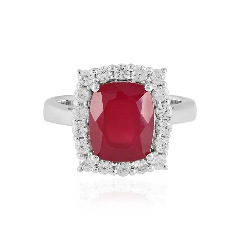 Entdecken Sie die Faszination von Madagaskar mit diesem funkelnden Rubinring, der von einem funkelnden Halo aus kambodschanischen Zirkonen im Rundschliff mit einem Gesamtgewicht von 0,893 ct gekrönt wird. Der Ring ist aus 925er Sterlingsilber mit einer luxuriösen Platinbeschichtung gefertigt und wiegt etwa 3,79 Gramm. Der zentrale Rubin im Antik-Schliff mit einer Größe von 10×8 mm strahlt zeitlose Eleganz aus und macht ihn zu einer exquisiten Wahl für besondere Anlässe oder einen Hauch von Raffinesse für den Alltag. Kombinieren Sie ihn mit Ihrem Lieblingsabendkleid oder einer schicken Bluse für einen sofortigen Farbtupfer und Glamour.