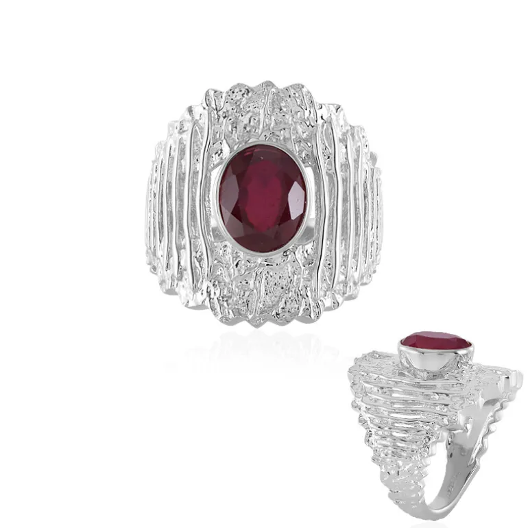 Treten Sie ins Rampenlicht mit diesem bezaubernden Ring aus 925er Sterlingsilber, der einen atemberaubenden 3,20-karätigen Madagaskar-Rubin im Ovalschliff enthält. Das strukturierte, kräuselförmige Band ergänzt perfekt den tiefroten Farbton des Rubins und macht ihn zu einem Statement. Der Ring eignet sich sowohl für die Freizeit als auch für formelle Anlässe und verleiht jedem Outfit einen Hauch von Raffinesse. Perfekt für alle, die eine Mischung aus moderner Eleganz und zeitlosem Charme suchen.