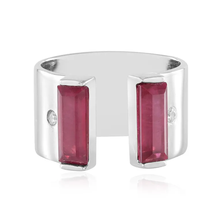 Dieser exquisite Ring zeigt zwei auffällige Rubine aus Madagaskar im Baguetteschliff, die mit brillanten Zirkonen aus Kambodscha kombiniert sind. Gefertigt aus edlem 925er Sterlingsilber, bietet er einen Hauch von Raffinesse und Eleganz. Dieser Ring eignet sich sowohl für den Alltag als auch für besondere Anlässe und verleiht ihm einen Hauch von Farbe und Stil. Kombinieren Sie ihn mit einem schicken Kleid oder einer eleganten Abendgarderobe für einen auffälligen Look.