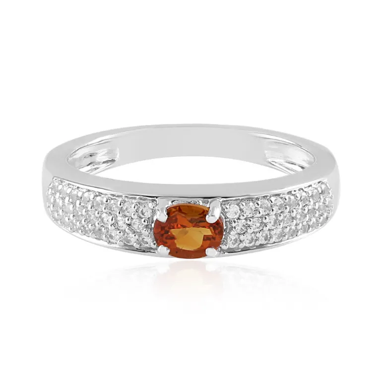 Entdecken Sie die Anziehungskraft dieses raffinierten Madeira-Zitrin-Silberrings, einer Kostbarkeit aus Brasilien mit einem fesselnden Edelstein von 0,315 Karat im Ovalschliff als Herzstück. Umgeben von einem Halo aus 48 funkelnden kambodschanischen Zirkonen mit einem Gesamtgewicht von 0,302 ct, die alle sorgfältig rund geschliffen wurden, um ihre Brillanz zu verstärken, ist dieser Ring in hochwertigem 925er Sterling Silber mit einem Gewicht von etwa 2,31 g gefasst. Die satten Honigtöne des Zitrins kontrastieren wunderschön mit dem schimmernden Silberband. Er ist ideal, um Ihrem Alltagsoutfit einen Hauch von Wärme zu verleihen oder als auffälliges Accessoire für besondere Anlässe.