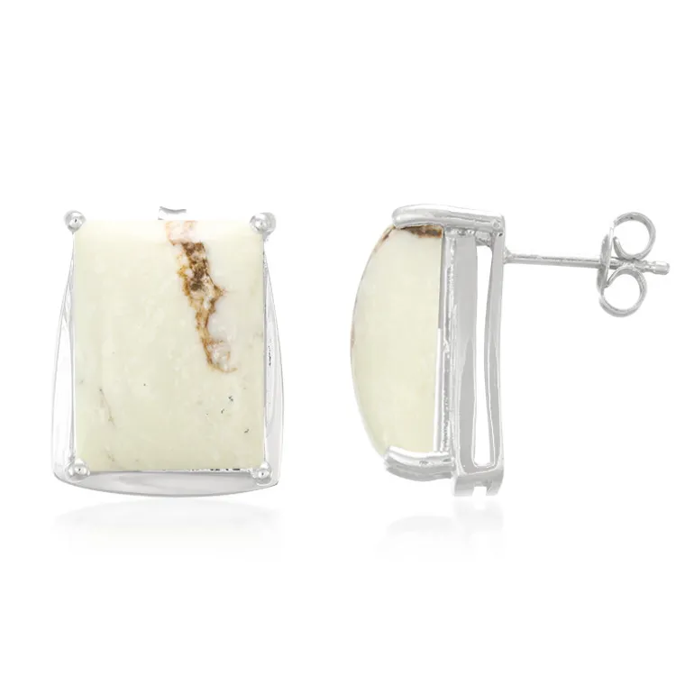 Entdecken Sie die Faszination dieser schicken Magnesit-Ohrringe aus Sterlingsilber mit 21,49 Karat exquisitem brasilianischem Magnesit im Baguette-Cabochon-Schliff. Die ruhigen Beigetöne machen sie zu einem perfekten Accessoire für legere und formelle Anlässe. Die Ohrringe mit einer Länge von 18 mm können zu einem fließenden Kleid oder einem eleganten Business-Outfit getragen werden und sorgen für einen raffinierten Look.