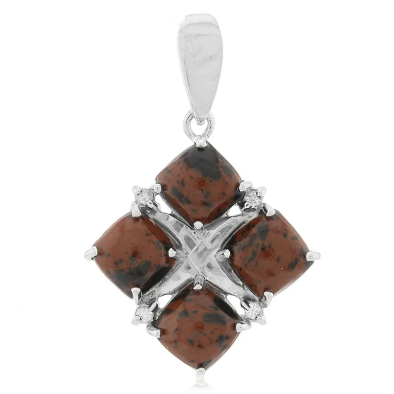 Entdecken Sie den erdigen Charme dieses Obsidian-Anhängers aus Mahagoni, der mit funkelnden Zirkon-Akzenten verziert ist. Vier antike, kissenförmige Obsidiane mit einem Gesamtgewicht von 8,64 Karat zeigen ihr einzigartiges Muster und ihre warmen Farbtöne, die durch den makellosen Schimmer von 0,173 Karat runden Zirkonen im Brillantschliff wunderschön kontrastiert werden. Das aus 925er Sterlingsilber gefertigte Schmuckstück mit einem Gewicht von ca. 3,47 Gramm ist ein Zeugnis raffinierter Handwerkskunst. Dieser Anhänger eignet sich perfekt, um sowohl der Freizeit- als auch der Gesellschaftskleidung einen Hauch von Raffinesse zu verleihen. Er ist vielseitig genug, um im Alltag oder zu besonderen Anlässen getragen zu werden.