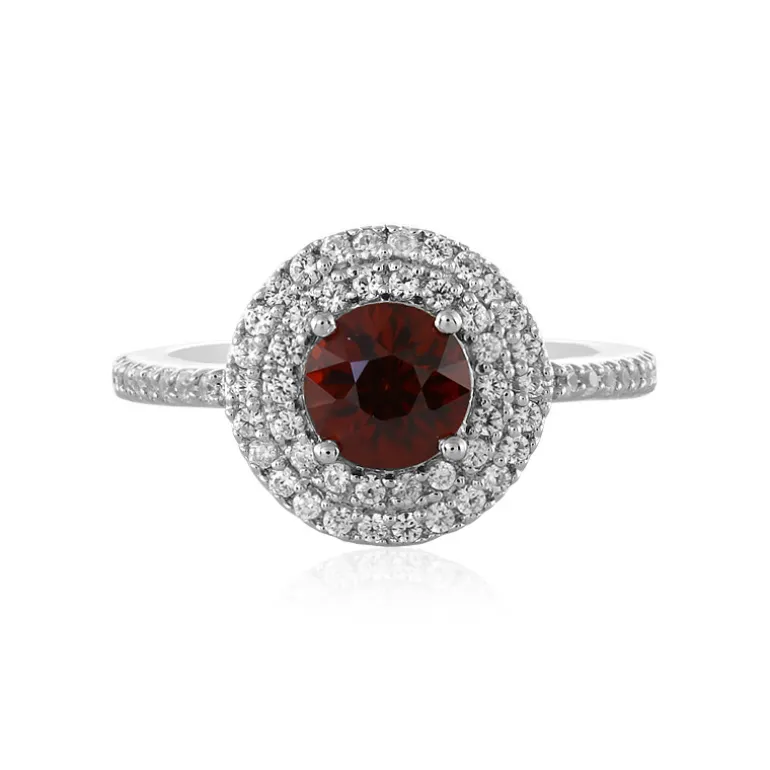 Erleben Sie die Anziehungskraft dieses platinierten Rings aus 925er Sterlingsilber mit einem fesselnden Zirkon von 1,171 Karat im Rundschliff aus kambodschanischem Mahagoni. Umgeben von 60 funkelnden Zirkonen von insgesamt 0,516 ct, glänzt dieser Ring mit einem beeindruckenden Gesamtgewicht von 1,687 ct. Die tiefen, satten Farbtöne des Mahagoni-Mittelstücks machen ihn zu einem exquisiten Schmuckstück für besondere Anlässe oder zu einer raffinierten Ergänzung für den Alltag.