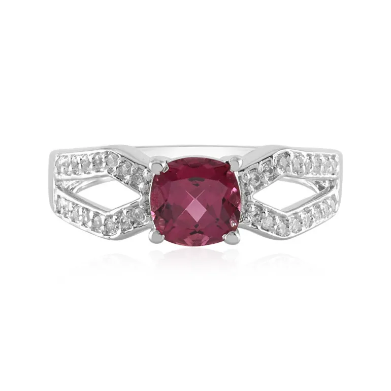 Platinbeschichteter Silberring mit Malawi-Granat im Kissenschliff