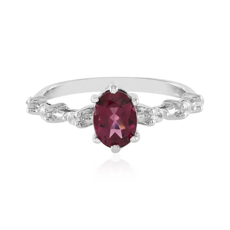 Malawi Granat Oval & Zirkon Silber Ring, 1,46ct