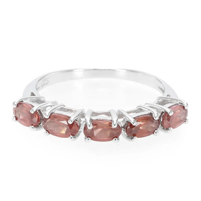 Entdecken Sie die Wärme der tansanischen Malaya-Granate mit diesem schicken Ring aus 925er Sterlingsilber. Mit fünf oval geschliffenen Edelsteinen von insgesamt 1,41 Karat, die in ein schlankes Silberband gefasst sind, strahlt dieser Ring moderne Eleganz aus. Er eignet sich sowohl für legere als auch für formelle Anlässe und verleiht jedem Outfit einen raffinierten Touch. Sein zartes Design macht ihn zu einem idealen Geschenk oder zu einer anmutigen Ergänzung Ihrer Schmucksammlung.