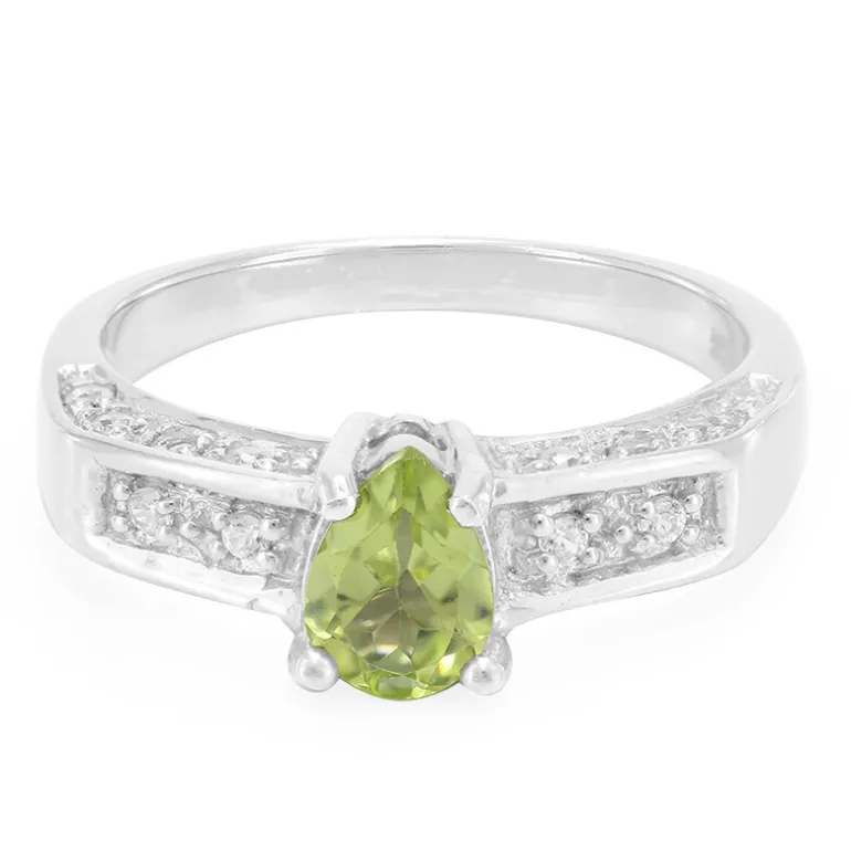 Entdecken Sie die Anziehungskraft des Ostens mit diesem bezaubernden Ring aus Mandschurian Peridot mit einem 0,54 Karat großen Tropfenschliff aus China, der von funkelnden Zirkonen aus Kambodscha mit insgesamt 0,298 Karat flankiert wird. Gefertigt aus 925er Sterlingsilber und mit einem Gewicht von ca. 3,28 g verbindet dieses Schmuckstück den grünen Farbton des Peridots mit dem Funkeln der Zirkone in einem harmonischen Design. Er ist ideal, um jedem Ensemble einen Hauch von Raffinesse zu verleihen und eignet sich sowohl für den Charme des Tages als auch für die Eleganz des Abends.