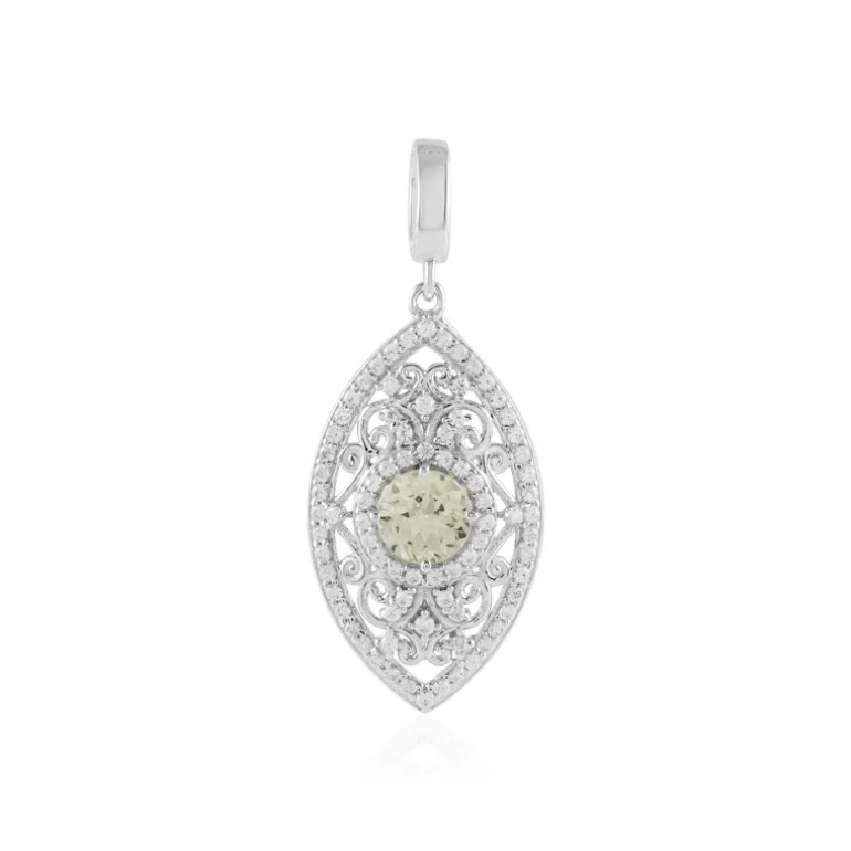 Entdecken Sie die Faszination Tansanias mit diesem bezaubernden Mint-Granat-Silberanhänger. Der zentrale Stein, ein kostbarer Merelani-Mint-Granat von 0,936 Karat, hat einen raffinierten Rundschliff und einen zarten Mint-Farbton, der von innen heraus strahlt. Dieses elegante Design aus 925er Sterlingsilber ist von 75 runden Zirkonsteinen mit einem Gesamtgewicht von 0,466 ct umgeben, die mit einer Platinveredelung für zusätzlichen Glanz sorgen. Mit einem Gewicht von ca. 2,42 g und einem vielseitigen Varioclip misst er beeindruckende 35 x 14 mm. Dieser Anhänger eignet sich perfekt zur Aufwertung der Alltagskleidung oder zur Ergänzung der Abendgarderobe für einen besonderen Anlass.