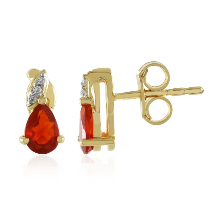 Erhellen Sie Ihren Look mit diesen leuchtenden Ohrringen mit mexikanischem Feueropal. Jeder Ohrring ist aus vergoldetem Sterlingsilber gefertigt und besteht aus einem feurigen, birnenförmigen Opal von 0,522 Karat, der von funkelnden Zirkonen aus Kambodscha akzentuiert wird. Diese Ohrringe eignen sich perfekt, um jedem Outfit einen Hauch von exotischer Eleganz zu verleihen, und sind vielseitig einsetzbar, sowohl für zwanglose Ausflüge als auch für formelle Anlässe. Ein Muss für Edelsteinliebhaberinnen.