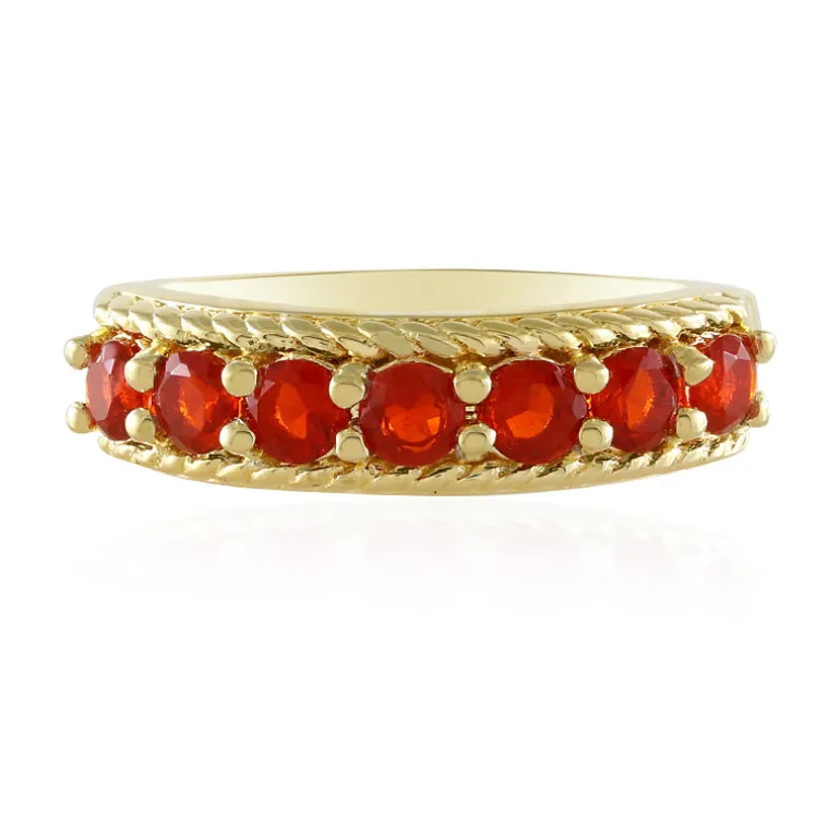 Entdecken Sie die lebendige Anziehungskraft dieses mexikanischen Feueropalrings aus vergoldetem 925er Sterlingsilber. Mit sieben schillernden Feueropalen im Rundschliff von insgesamt 0,405 Karat strahlt dieser Ring eine feurige Eleganz aus. Er ist ideal, um jedem Outfit einen Hauch von Farbe zu verleihen und eignet sich sowohl für die Freizeit als auch für besondere Anlässe. Lassen Sie diesen Ring zu einer fesselnden Ergänzung Ihrer Schmucksammlung werden.