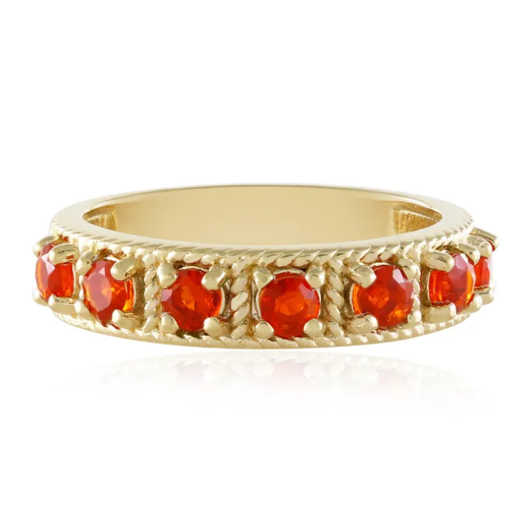 Entdecken Sie die lebendige Anziehungskraft unseres vergoldeten Silberrings mit mexikanischem Feueropal. Mit sieben schillernden 3 mm großen Opalen im Rundschliff ist dieses Schmuckstück ein wahres Zeugnis der Eleganz. Gefertigt aus 925er Sterlingsilber und wunderschön vergoldet, bietet er einen warmen, luxuriösen Touch. Dieser Ring eignet sich perfekt, um Ihrer Kleidung einen farblichen Akzent zu verleihen, und ist sowohl für legere Ausflüge als auch für anspruchsvolle Veranstaltungen geeignet.