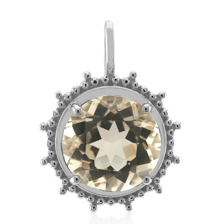 Entdecken Sie die Anziehungskraft dieses atemberaubenden Anhängers mit mexikanischem Sonnenstein, der durch den leuchtenden Glanz von 925er Sterlingsilber akzentuiert wird. Dieser elegante Anhänger mit dem sonnenähnlichen Funkeln eines 2,975 ct großen Edelsteins im fesselnden Rundschliff misst etwa 19 x 15 mm. Sein Strahlen wird von einer zarten Silberkugel umrahmt, die einen himmlischen Effekt erzeugt und sowohl zu legeren als auch zu formellen Anlässen passt. Dieser Schatz ist eine einzigartige Ergänzung für jede Schmucksammlung und wird mit seinen warmen Goldtönen und funkelnden Facetten Komplimente ernten.