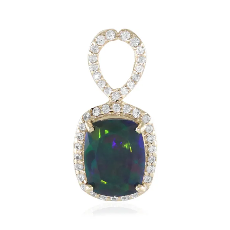 Entdecken Sie die Eleganz dieses exquisiten Mezezo-Opal-Anhängers, der einen fesselnden Opal im Antikschliff von 0,941 Karat aus Äthiopien zeigt. Der Anhänger ist in 375 Gold gefasst und mit funkelnden kambodschanischen Zirkonen verziert, die seinen Reiz noch verstärken. Das einzigartige Design des Anhängers eignet sich sowohl für formelle Anlässe als auch für einen Hauch von Luxus im Alltag. Kombinieren Sie ihn mit einer zarten Kette und machen Sie ihn zu einem auffälligen Accessoire.