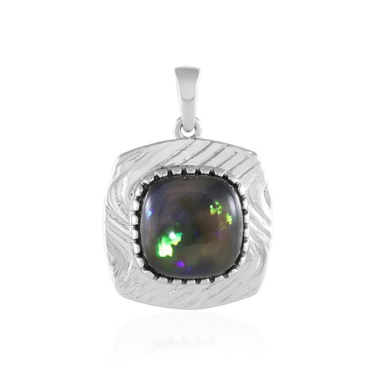 Entdecken Sie die Faszination des äthiopischen Mezezo-Opals in diesem schicken Anhänger. Der 4,091-karätige Kissen-Cabochon, gefasst in platiniertem 925er Sterlingsilber, zeigt ein faszinierendes Farbenspiel. Das elegante Design wertet jedes Ensemble auf und eignet sich sowohl für den Tag als auch für die Nacht. Kombinieren Sie ihn mit einem schlichten Kleid für einen Hauch von Raffinesse oder tragen Sie ihn als Statement-Stück für besondere Anlässe.