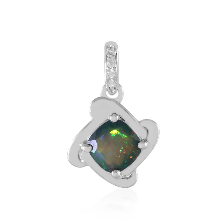Entdecken Sie die bezaubernde Anziehungskraft des Mezezo-Opal-Anhängers aus Sterlingsilber. Mit einem äthiopischen Mezezo-Opal im Kissenschliff als Herzstück, umgeben von funkelnden Zirkonen aus Kambodscha, strahlt dieses Schmuckstück Eleganz aus. Er passt sowohl zu formellen als auch zu legeren Outfits und verleiht jedem Ensemble einen Hauch von zeitloser Schönheit.