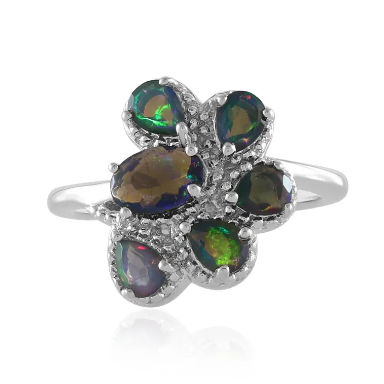 Dieser atemberaubende Ring zeigt ein exquisites Arrangement aus funkelnden Mezezo-Opalen aus Äthiopien, gefasst in hochwertigem 925er Sterlingsilber. Die Kombination aus ovalen und tropfenförmigen Opalen von insgesamt 0,765 Karat ergibt ein faszinierendes florales Design. Perfekt, um jedem Outfit einen Hauch von Eleganz zu verleihen, sei es für einen lässigen Tagesausflug oder eine Abendveranstaltung. Ein Muss für Edelsteinliebhaber.