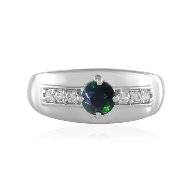 Entdecken Sie die Faszination dieses exquisiten Mezezo Opal Rings mit einem faszinierenden äthiopischen Opal und funkelnden Zirkonen aus Kambodscha. Dieser elegante Ring aus 925er Sterlingsilber präsentiert sich in einem modernen Design, das jedes Outfit aufwertet. Ideal für legere und formelle Anlässe, kombinieren Sie es mit Ihrem Lieblingskleid oder Ihrer Abendgarderobe für einen Hauch von Raffinesse.