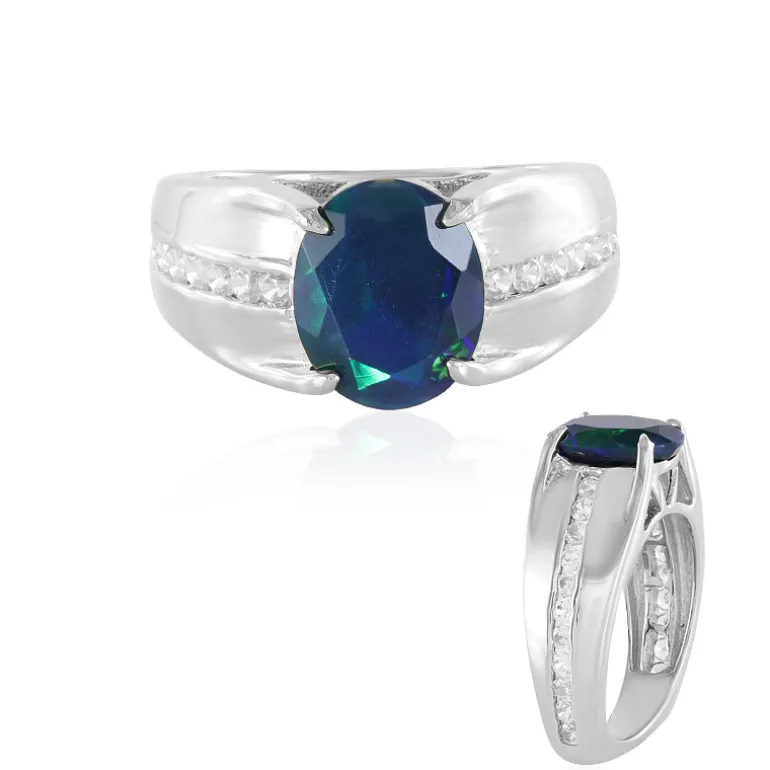 Tauchen Sie ein in die tiefen Farbtöne dieses äthiopischen Mezezo-Opalrings, der in 925er Sterlingsilber gefasst ist. Der zentrale Opal verblüfft mit einem geheimnisvollen Farbspiel von 1,796 Karat und ist im Ovalschliff geschliffen, um seine Anziehungskraft zu maximieren. Flankiert von funkelnden kambodschanischen Zirkonen von insgesamt 1,093 ct, strahlt dieser Ring Raffinesse aus. Mit einem Edelsteingewicht von insgesamt 2,889 ct setzt er bei jeder Gelegenheit ein Zeichen. Er passt perfekt zu einem eleganten Abendkleid oder zu Alltagsoutfits und ist ein Hauch von Luxus mit einem Hauch von Intrige.