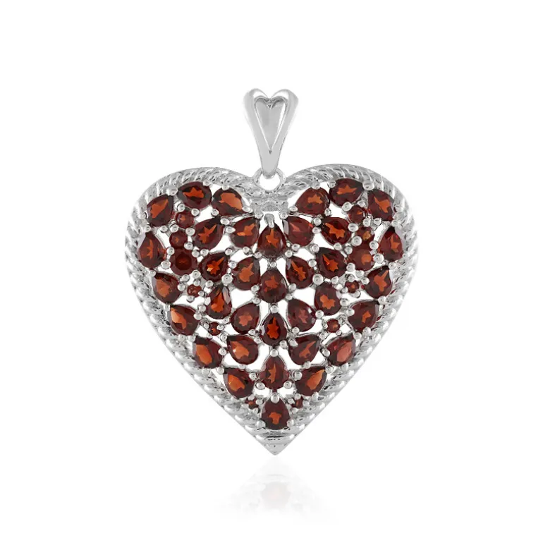 Dieser exquisite herzförmige Anhänger mit leuchtenden Granaten aus Mosambik verleiht Ihrem Stil eine besondere Note. Die glänzenden roten Edelsteine mit insgesamt 6,462 Karat sind in 925er Sterlingsilber gefasst und verleihen jedem Ensemble einen eleganten Touch. Er eignet sich sowohl für Freizeitausflüge als auch für besondere Anlässe. Kombinieren Sie ihn mit einer schlichten Kette für einen raffinierten Look, der von zeitloser Raffinesse zeugt.