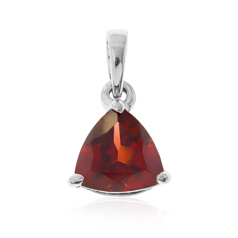 Lassen Sie sich von der warmen Ausstrahlung dieses platinierten Anhängers aus 925er Sterlingsilber mit einem atemberaubenden Mosambik-Granat im Trillant-Schliff (1,726 Karat) verzaubern. Der tiefrote Farbton des Edelsteins wird durch das schlichte, moderne Design hervorgehoben und macht ihn zu einem auffälligen Schmuckstück, das jedem Outfit einen Hauch von Raffinesse verleiht. Dieser Anhänger eignet sich sowohl für den Alltag als auch für besondere Anlässe und wird mit Sicherheit zu einem geschätzten Teil Ihrer Sammlung.