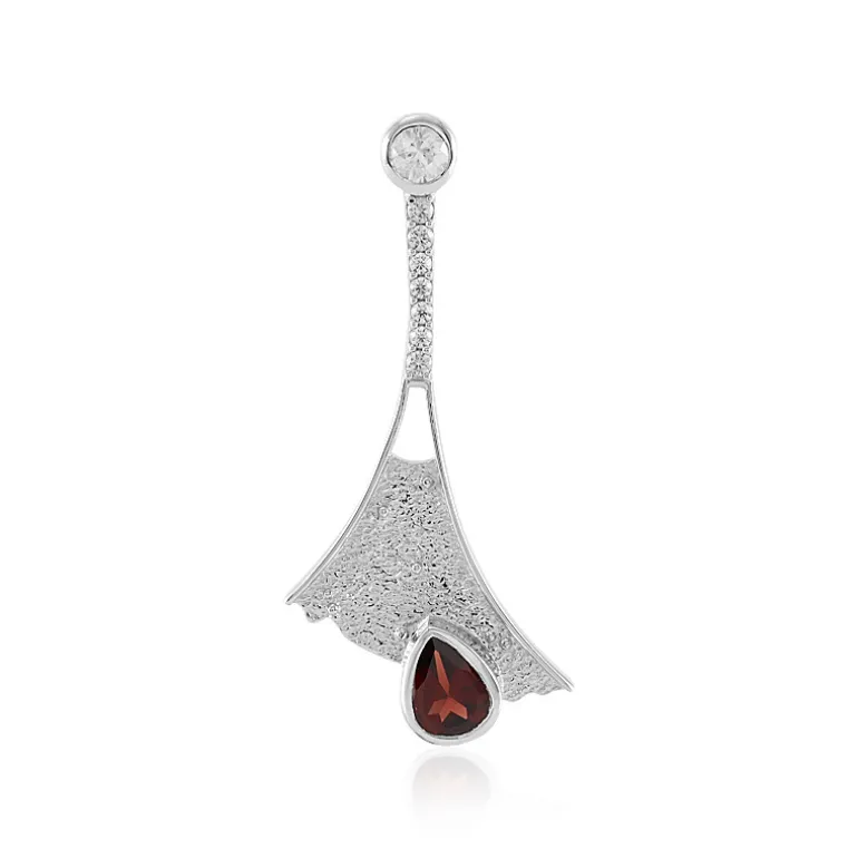 Entdecken Sie die Anziehungskraft dieses exquisiten Anhängers aus Sterlingsilber, der von einem faszinierenden Granat aus Mosambik in Tropfenform hervorgehoben wird, der mit seinen 1,235 ct tiefrot funkelt. Eingerahmt von einer Symphonie kambodschanischer Zirkone von insgesamt 0,818 ct, erstrahlt dieses Schmuckstück mit einem zusätzlichen Hauch von Brillanz. Das Schmuckstück ist aus reinem Platin und 925er Silber gefertigt und wiegt ca. 4,34 g. Es ist vielseitig einsetzbar und eignet sich sowohl für elegante Anlässe als auch als Farbtupfer für den Alltag.