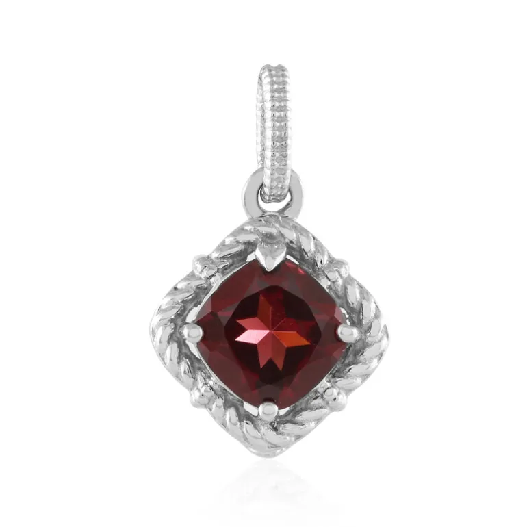 Entdecken Sie zeitlose Eleganz mit diesem Mosambik-Granat-Anhänger aus Silber mit einem antiken Granat im Kissenschliff von 1,477 Karat. In glänzendem, platiniertem 925er Sterlingsilber gefasst, bietet dieses Stück einen raffinierten Charme. Er passt sowohl zu formellen als auch zu legeren Outfits und strahlt einen satten, tiefroten Farbton aus, der sich wunderbar mit Abendkleidern kombinieren lässt oder alltäglichen Ensembles einen Hauch von Luxus verleiht.