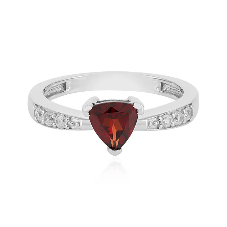 Entdecken Sie die Faszination des Mosambik-Granats mit diesem eleganten Ring aus platiniertem 925er Sterlingsilber. Der zentrale Granat von 0,629 Karat, geschliffen in einer markanten Trilliant-Form, strahlt in einem tiefen Rot, das durch das Funkeln von sechs Zirkonen im Rundschliff aus Tansania ergänzt wird. Sein schlankes Design macht ihn zu einem vielseitigen Schmuckstück, das sich sowohl für zwanglose Treffen als auch für formelle Anlässe eignet. Kombinieren Sie diesen Ring mit einem klassischen kleinen schwarzen Kleid oder einem maßgeschneiderten Blazer, um Ihrem Ensemble einen Hauch von Eleganz zu verleihen.