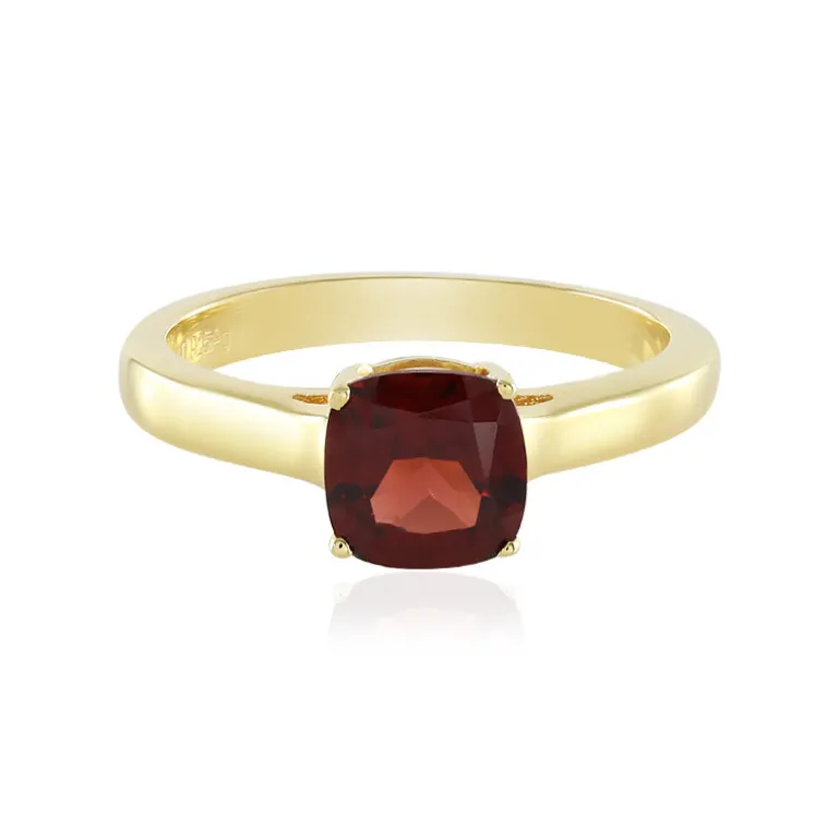 Entdecken Sie die Anziehungskraft dieses Mosambik-Granatrings, der in vergoldetem 925er Sterlingsilber mit Vintage-Kissenschliff gehalten ist. Der tief karminrote Edelstein wiegt 1,09 Karat und misst etwa 6 mm. Er wurde fachmännisch geschliffen, um seine schimmernde Tiefe zu maximieren. Dieses Schmuckstück mit einem eleganten Band, das etwa 2,19 g wiegt, ist ein zeitloser Schatz. Er ist perfekt geeignet, um sowohl der Tages- als auch der Abendgarderobe einen Hauch von Raffinesse zu verleihen, und verkörpert klassische Eleganz mit einem modernen Twist.