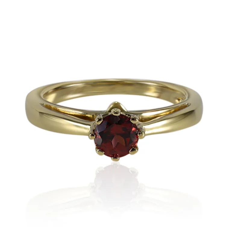 Entdecken Sie die Faszination unseres Mosambik-Granatrings mit einem 0,55 Karat großen Edelstein im Rundschliff, gefasst in glänzendem 925er vergoldetem Sterlingsilber mit einem Gesamtgewicht von ca. 2,69 g. Der leuchtend rote Granat, der etwa 5 mm groß ist, verleiht diesem modernen Schmuckstück einen Hauch von klassischer Eleganz. Er ist ein perfekter Begleiter sowohl für zwanglose Ausflüge als auch für formelle Anlässe. Mit diesem zeitlosen Schmuckstück verleihen Sie jedem Ensemble einen Hauch von Farbe und Raffinesse.