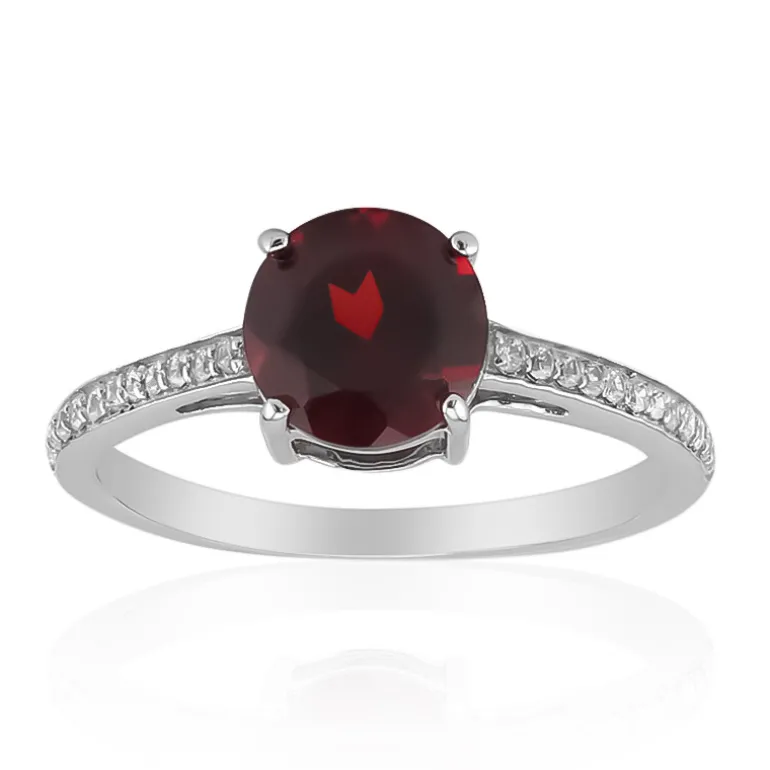 Dieser atemberaubende Ring präsentiert den tiefroten Reiz eines Mosambik-Granats im Rundschliff mit einem Gewicht von 1,348 Karat, eingefasst in ein schimmerndes Band aus platiniertem 925er Sterlingsilber. Ein Kranz aus funkelnden Zirkonen aus Tansania von insgesamt 0,13 Karat veredelt den zentralen Edelstein und macht dieses Schmuckstück zu einem Zeugnis zeitloser Eleganz. Dieser Ring eignet sich sowohl für zwanglose Anlässe als auch für die raffiniertesten Soireen und verspricht, für Gesprächsstoff zu sorgen.