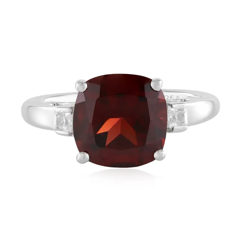 Entdecken Sie Eleganz mit diesem Mosambik-Granat-Silberring. Mit einem atemberaubenden 3,312 ct Granat im antiken Kissenschliff, flankiert von zwei kambodschanischen Zirkonen im Prinzessschliff. Der Ring ist aus 925er Sterlingsilber gefertigt und bietet zeitlose Eleganz. Perfekt für Abendveranstaltungen, passt dieser Ring wunderbar zu formeller Kleidung und verleiht Ihrem Ensemble einen Hauch von Luxus.